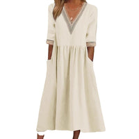 The Olivia Dress combines comfort and charm with its loose, mid-length design and delicate lace collar. Crafted for ease and style, it offers a relaxed fit that flatters every shape — perfect for casual days, cozy gatherings, or simply feeling put together without the fuss.